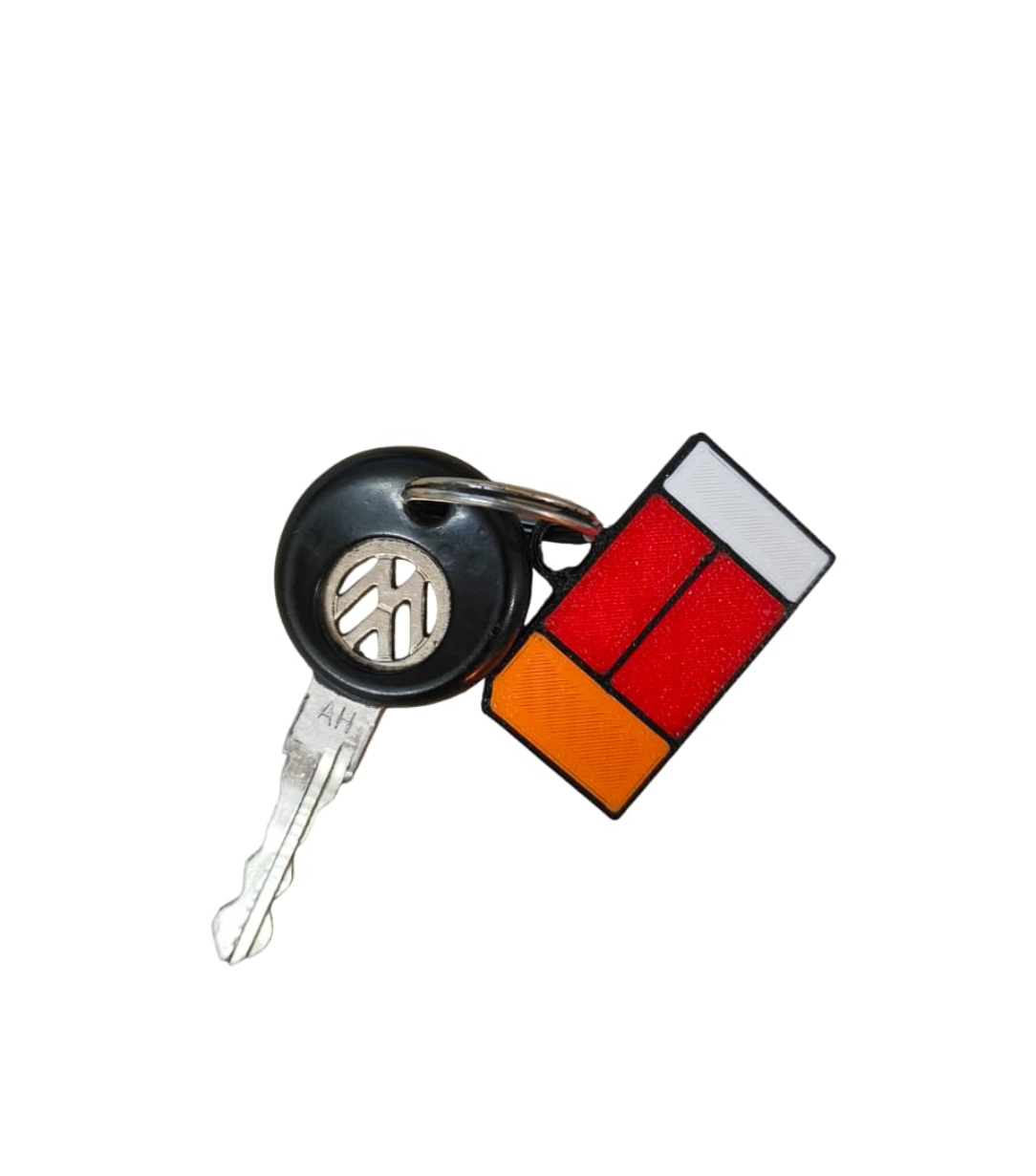 Dieser stilvolle Schlüsselanhänger im Golf 1 Rücklicht-Design ist perfekt für Volkswagen-Liebhaber. Mit seinem charakteristischen rot-orangefarbenen Muster auf einer schwarzen Basis ist er ideal, um deine Schlüssel mit einem Hauch von Oldtimer-Flair zu organisieren.